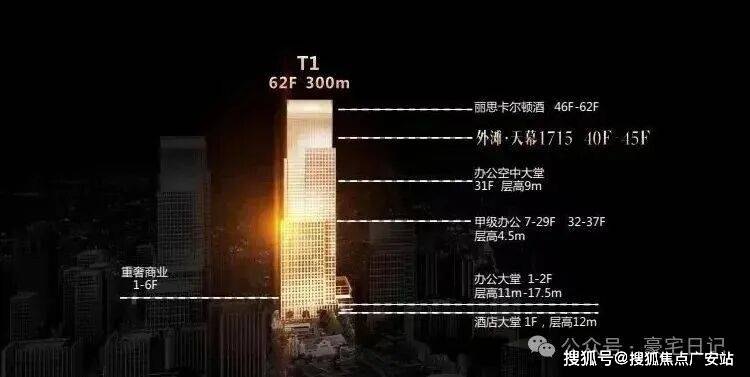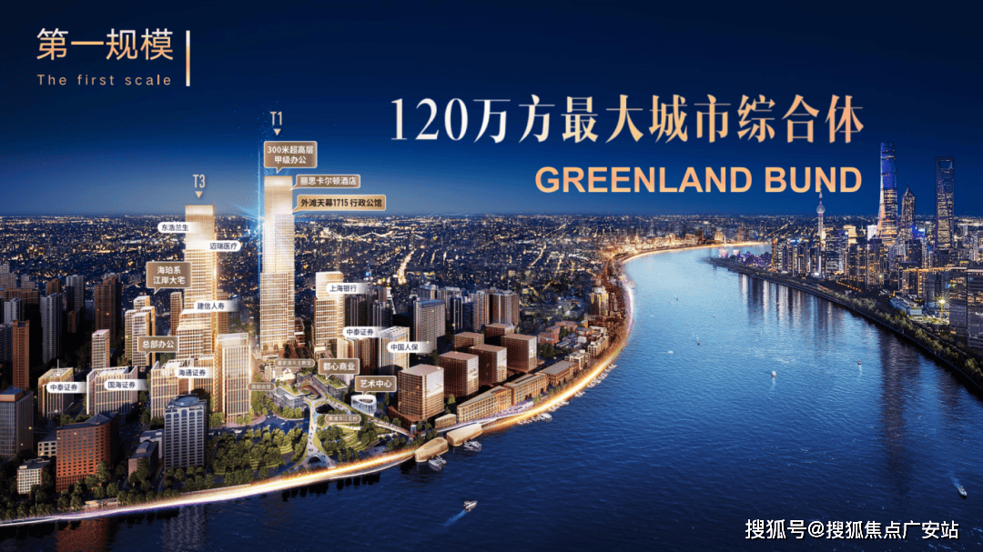 绿地外滩中心项目占地面积约12.67万㎡,总建筑面积约119.9万㎡,地上建筑面积中,计容建筑面积约70.19万㎡,其中商办57.5558万㎡,住宅12.6342万㎡。项目包括4栋甲级写字楼(T1,T3分别为300米+240米)、7栋总部办公楼、购物中心、超高层星级奢华酒店、8栋住宅楼等。其中300米的超高层规划蓝图,在天际建筑汇聚的外滩,再一次刷新了城市天际线层为五星级酒店(丽思卡尔顿)38-40-45层为行政公馆!中部7-37层为甲级办公,底部为商业及大堂。