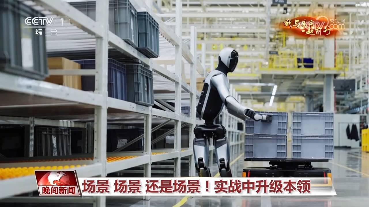 优必选科技首席品牌官 谭旻:机器人电量低于20%的时候,它就能够通过群体网络联网,找到工厂里面离它最近的一个充电桩,走过去进行三分钟之内的自主换电,从而实现24小时永不间断的新质生产力。