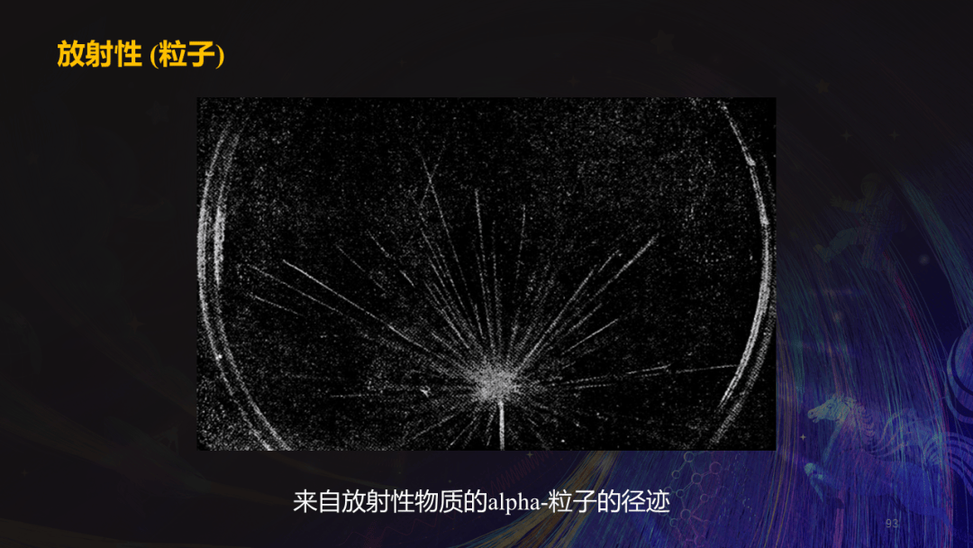 这是阿尔法粒子,比方说在这个云室里面,你能看出来,就是说这右沿发射粒子的强度还是非常大的啊。所以说当年做这个原子核实验,那时候还不知道保护,包括做X射线的人,一开始都不知道保护,很多人最后健康受到影响。