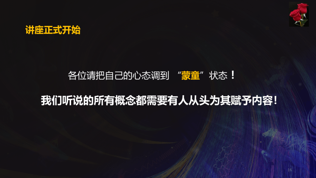 大家可能觉得这句话好有道理,但其实我们注意到孤零零的一句话,实际上是不包含信息的,所以说我希望的是大家听完了我今天的讲座以后,返回头来你再看看关于这样一句话,你脑子里面再见到这句话的时候,它浮现出的内容就不一样了。