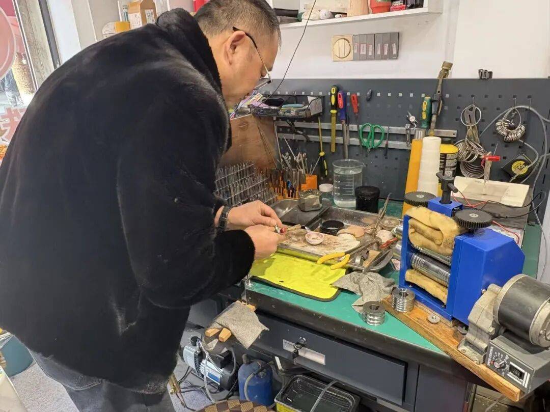 很难想象,熊师傅干这一行已经三十多年。12岁那年,他的伯父从广东学了打金手艺,回来后教给了几个晚辈,熊师傅是其中之一。