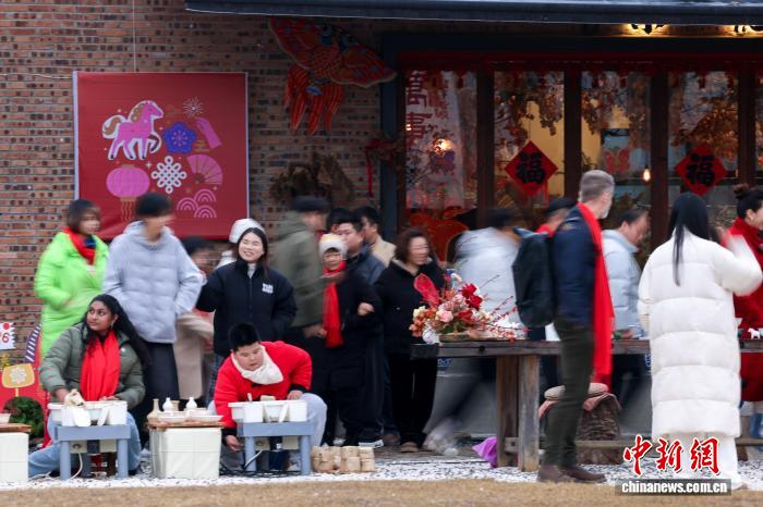 马年春节期间,在江西省景德镇市,游客在体验陶艺制作。景德镇市珠山区融媒体中心 供图