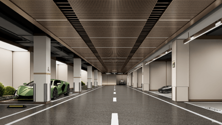 光是停车就可见其用心,规划了100%人车分流,并且每户都配备了3个独立车位,彻底解决高端家庭的停车烦恼。地下车库也按五星级标准打造,有独立的车库门厅,让每一次归家都充满尊崇感。