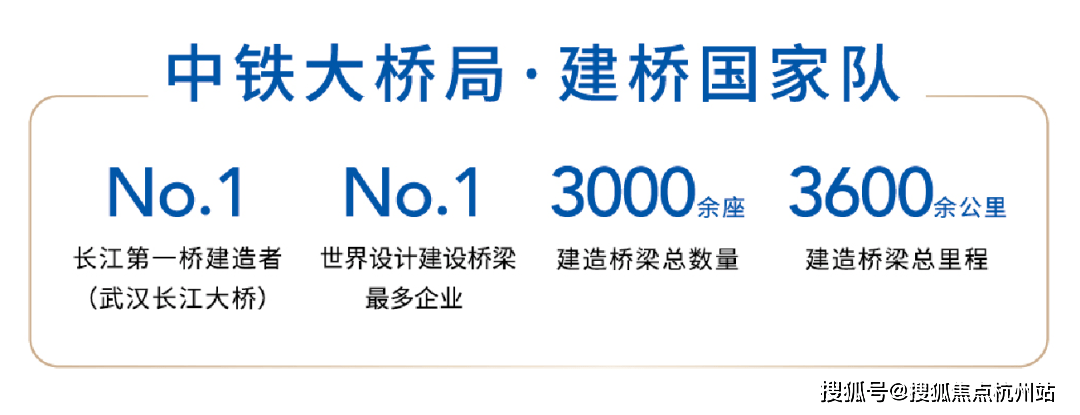 中铁大桥局集团前身为1953年修建万里长江第一桥“武汉长江大桥”经政务院批准成立的铁道部大桥局,是中国桥梁事业的领军者,是世界上设计桥梁最多的企业,中国“一带一路”走向世界的“建桥国家队”。在世界范围内建造桥梁总数超过3000 座,建造桥梁总里程超过3600余公里,建桥技术国际领先。近70年来,公司曾先后参与建设了杭州湾跨海大桥、东海大桥、港珠澳大桥、武汉长江大桥、南京长江大桥等一系列知名桥梁,一直引领着中国桥梁事业发展方向,以建桥的心志去建造住宅。