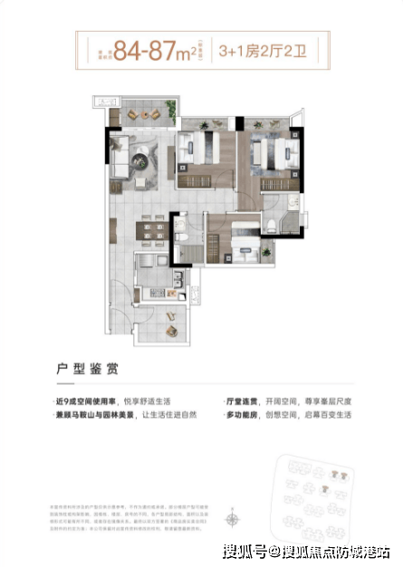 对于首次置业的刚需家庭来说,总价预算通常是首要考虑因素。项目推出的84平方米3+1房,总价500万起,首付15%仅需75万即可入手,门槛极低,极大地降低了上车难度。84平方米户型空间紧凑实用,额外拓展的房间可以作为书房、儿童房或储物间使用,功能灵活多变。这种“3+1”的设计,既保证了三房的基本居住功能,又增加了一个可变空间,适应了家庭生命周期变化的需求。例如,当孩子还小时,这个房间可以作为游戏室;当孩子长大需要独立空间时,可以改造成卧室;当家里来客人时,又可以作为客房使用。