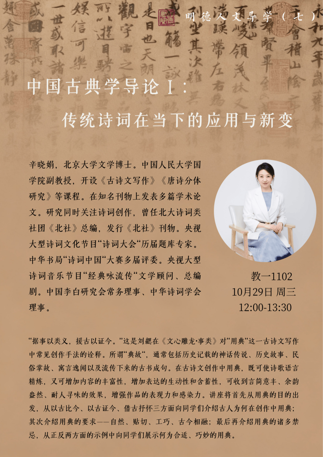 【地点】北京大学民主楼208(如需办理入校,请于10月28日(周二)16:00前将您的姓名、身份证号、手机号、所属单位、计划旁听的讲座场次发送至