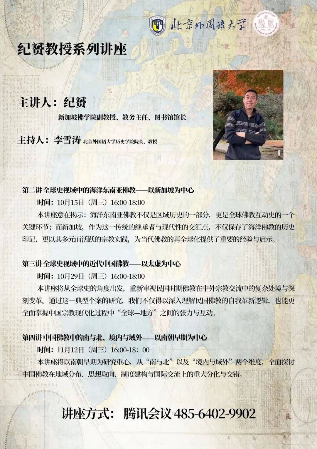 【内容】本讲座将从全球史的角度出发,重新审视民国时期佛教在中外宗教交流中的复杂处境与深刻变革。通过这一典型个案的研究,我们不仅得以深入理解民国佛教的自我革新逻辑,也能更全面掌握中国宗教现代化过程中“全球—地方”之间的张力与互动